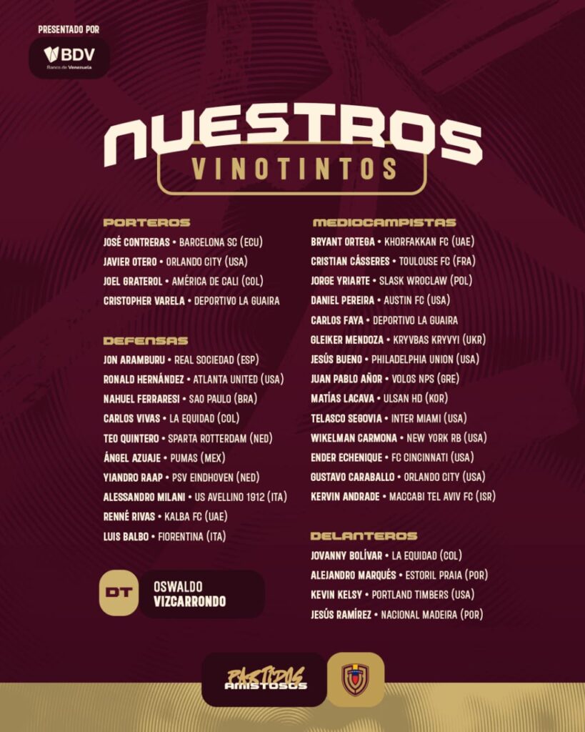 A continuación, la lista completa de los futbolistas citados por Vizcarrondo: