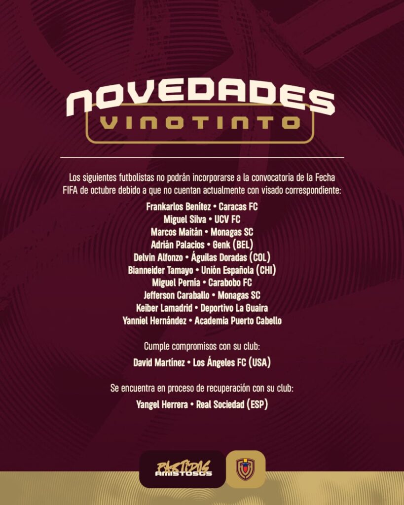 En el llamado destacan las ausencias de referentes como Salomón Rondón, Tomás Rincón y Yefferson Soteldo. En contraparte, abundan jugadores que en el ciclo del argentino Fernando Batista no gozaron de mayores oportunidades.