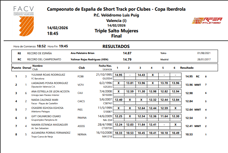 Así las cosas, la nacida en Caracas y formada en Anzoátegui quebró el guarismo de la Copa Iberdrola, que ella mismo había fijado en 2017 (14.79m), al tiempo que se ubicó en el primer lugar del ranking del mundo en el naciente curso.